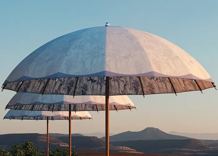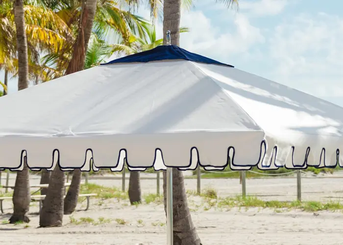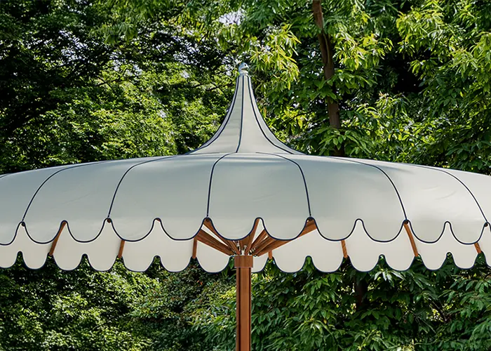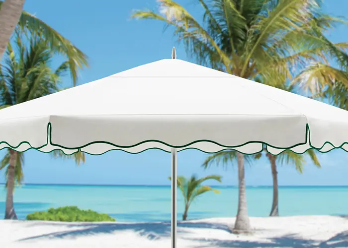 Enhance your parasol with contrasting welts that gracefully trace each curved rib along the top of the canopy, creating a defined and elevated silhouette. Available in a variety of colors. *Not available with double canopy enhancement.