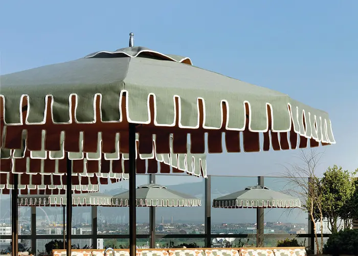 Beautifully outlining the artful shape and symmetry of a Tuuci parasol, contrasting binding creates an elegant style that is uniquely your own. The binding detail is added to the edge and vent of the canopy, and is available in a variety of colors to coordinate with any design palette.