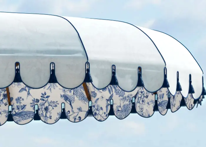 Inspired by the parasols once carried through dessert climates, this six-inch cord fringe dresses up the perimeter of square, rectangle, round, octagon, and hexagon canopies.